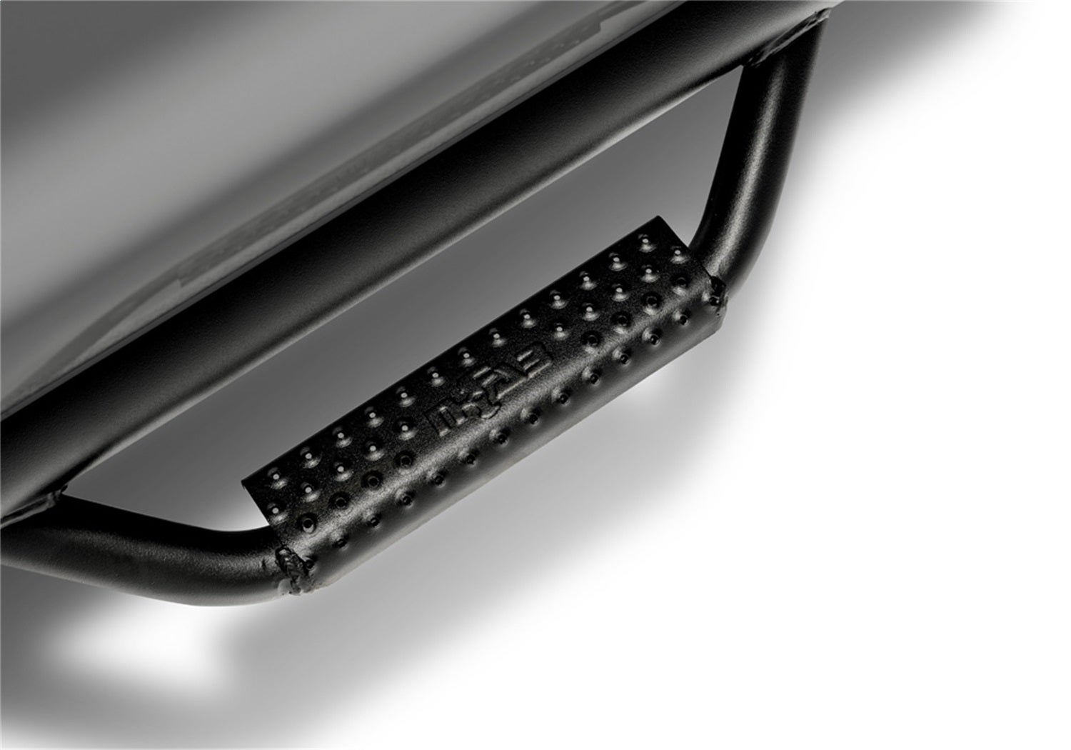 One of N-FAB's most popular styles is the Wheel to Wheel Nerf-Step. Utilizing N-FAB's patented hoop step design and innovative mounting system, N-FAB Wheel to Wheel Nerf Steps work on vehicles with and without body lift kits, with no modifications to brackets or bars. All N-FAB Wheel to Wheel Nerf Steps are built using .084 wall steel tubing and offer an industry high load rating of 465 pounds. All N-FAB Wheel to Wheel Nerf Steps are constructed as one-piece assemblies to provide maximum strength and durability not found in modular designs. Wheel to Wheel Nerf-Steps are designed and built specifically for each application, and mount high and tight to the vehicle cab for a clean factory look.