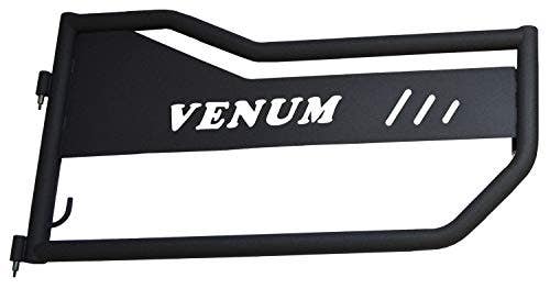 Venum JK Jeep Tube Doors are a modern design that looks great and offers an open air feeling with the security of having a barrier between passengers and the open road. Designed with the distinctive Venum badging that can only be found at Owens Products. Built from 1.5 Inch OD aluminum tubing with a textured black powder coat finish for that off-road look. Stainless Steel latches are included.