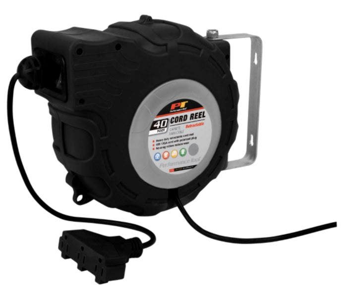 Performance Tool W2278 40ft 12-Gauge Retractable Power Cord Reel with Spring Loaded Auto-Rewind