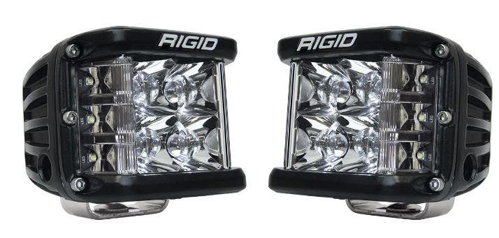 One of RIGIDs most versatile, compact lighting solutions just got better with the RIGID D-SS PRO, Dually-Side Shooter LED pod light. Perfect for any application that requires a wide spread beam, including A-Pillars, fog lights, and motorcycle applications. The D-SS PRO incorporates powerful optics and recently improved LED technology for greater output with the added benefit of additional LEDs aimed to the side for a much broader beam. The D-SS PRO packs a powerful punch with up to 102 percent more raw lumens. The D-SS PRO feature 120-degrees of horizontal lighting coverage. The main forward-facing LEDs are available with RIGIDs advanced Spot, Flood, or Driving optics, so there is a D-SS PRO lighting solution for nearly any application. The D-SS PRO LED lights are available in pairs with three side-shooting LEDs on one side of each light, or in single applications with a pair of side-shooting LEDs on both sides of the light. Only RIGID provides a broad, powerful lighting solution in such a compact package. Own The Night with RIGIDs original side shooter LED light.