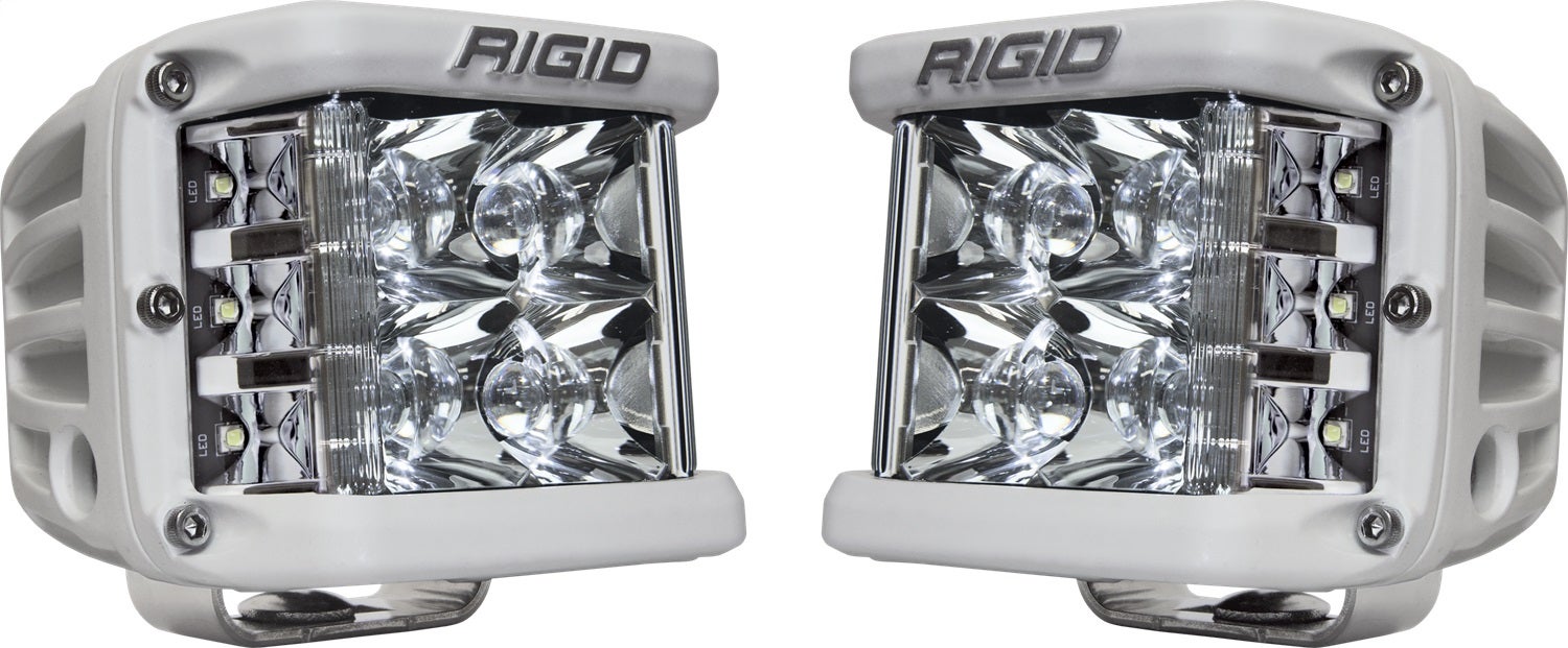 One of RIGIDs most versatile, compact lighting solutions just got better with the RIGID D-SS PRO, Dually-Side Shooter LED pod light. Perfect for any application that requires a wide spread beam, including A-Pillars, fog Lights, and motorcycle applications. The D-SS PRO incorporates powerful optics and recently improved LED technology for greater output with the added benefit of additional LEDs aimed to the side for a much broader beam. The D-SS PRO packs a powerful punch with up to 102 percent more raw lumens. The D-SS PRO feature 120 degrees of horizontal lighting coverage. The main forward-facing LEDs are available with RIGIDs advanced Spot, Flood, or Driving optics, so there is a D-SS PRO lighting solution for nearly any application. The D-SS PRO LED lights are available in pairs with three side-shooting LEDs on one side of each light, or in single applications with a pair of side-shooting LEDs on both sides of the light. Only RIGID provides a broad, powerful lighting solution in such a compact package. Own The Night with RIGIDs original side shooter LED light.