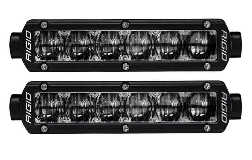 Off-road auxiliary lighting is one thing, but everyone knows that it is important to have lighting that is also safe and legal for on-road use. RIGID SAE Compliant street legal Fog Lights and Auxiliary High Beam Driving Lights allow them to be used on-the-road and not just off-road. RIGID created the proprietary output spread and height with the new patented optic system. The color temperature of these LEDs was carefully chosen to be a perfect range of pure daylight to penetrate the night for superior clarity on the road. These SAE Compliant lights project long-range high intensity light while drawing very little power and provide up to 50,000 useful hours. Available in many housing sizes, including SR-M, SR-Series single row, E-Series double row and D-Series pods. As an added function, the 20 and 30 Inch SR-Series SAE LED light bars offer a bold backlit RIGID branding plate. This feature can be run independently, or in tandem with the forward projecting LEDs. The low-profile optic design, advanced engineered heat sink, durability and the highest quality of strength of a polycarbonate lens is the ultimate solution for your street-legal lighting needs in North America. Own The Night with RIGIDs street legal LED lights.