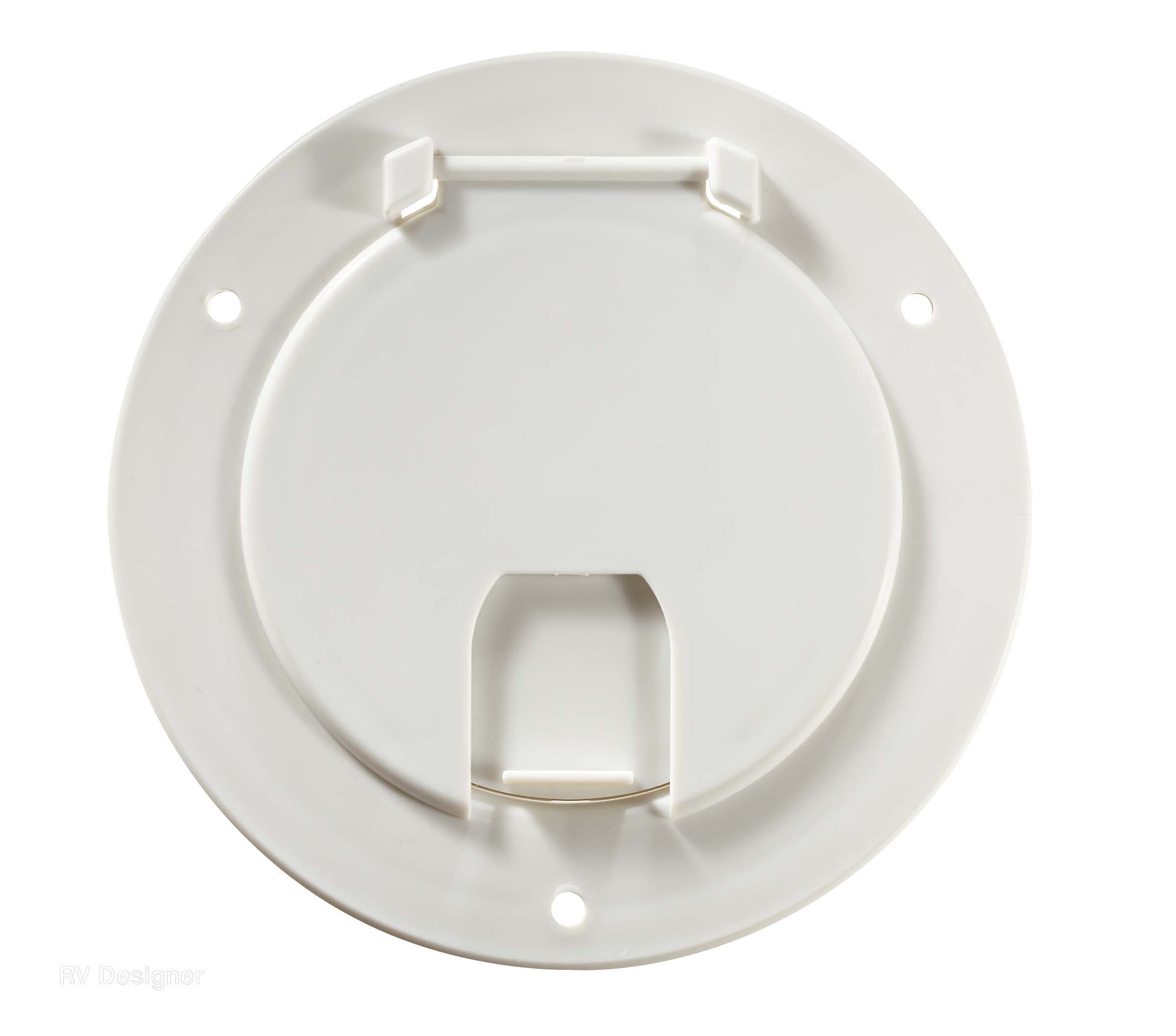 RV Designer B110, Round Electrical Cable Hatch, Deluxe, Replaceable Lid, 5.2 inch Diameter, Polar White