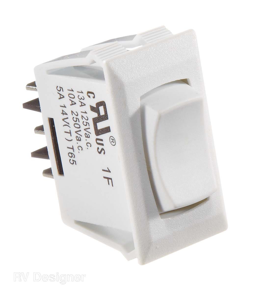 RV Designer S345, White Rocker Switch, 10 A, Momentary On/Off/Momentary On - SPDT - Cut-Out .550" x 1.125"