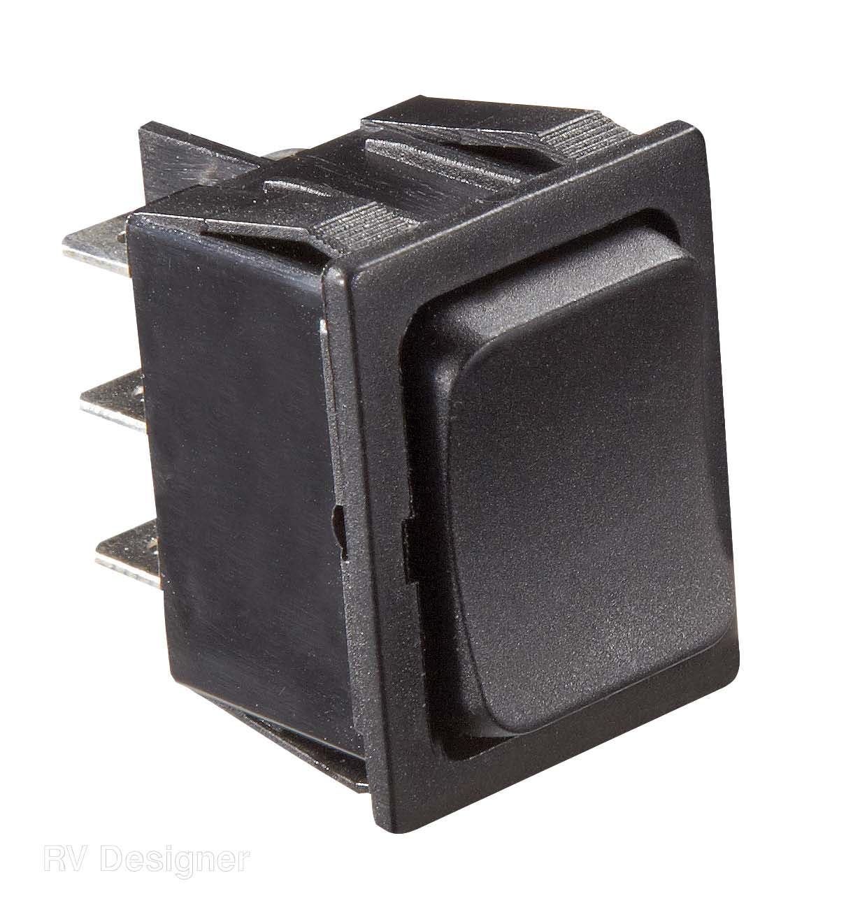 RV Designer S471, Rocker Switch, 5 Amp, Momentary On / Off Momentary On, DPDT, Black, DC Electrical