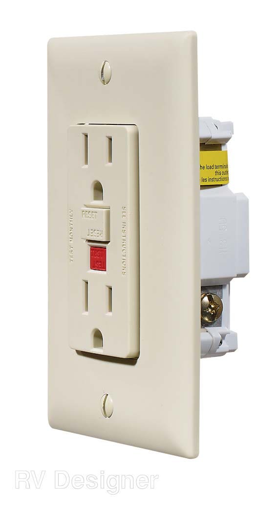 RV Designer S803, Dual GFCI Outlet with Cover Plate, Ivory, AC Electrical