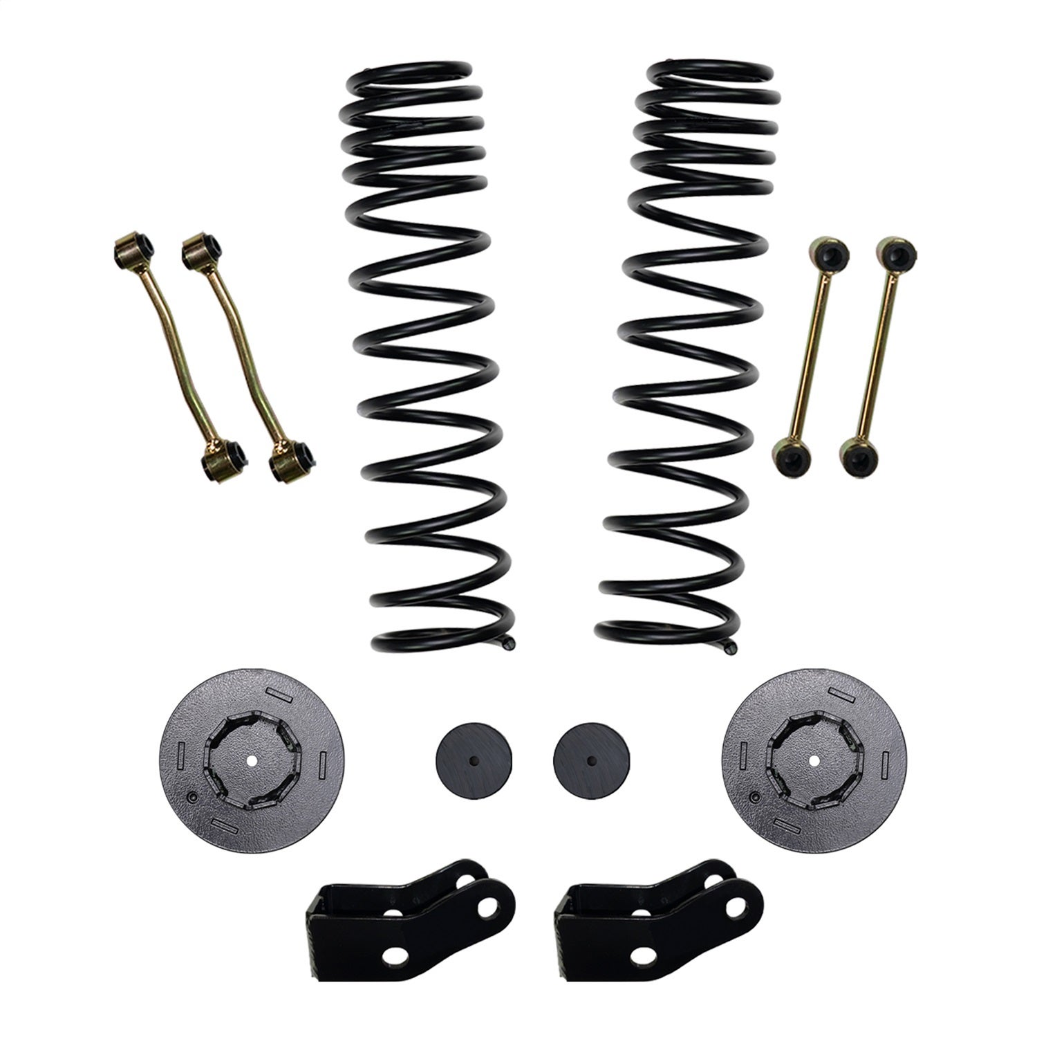 Suspension Lift Kit; 2.5 in. Lift; Front Dual Rate Long Travel Coil Springs; Rear Metal Coil Springs Spacers; Front Shock Extensions; Bump Stop Extensions;