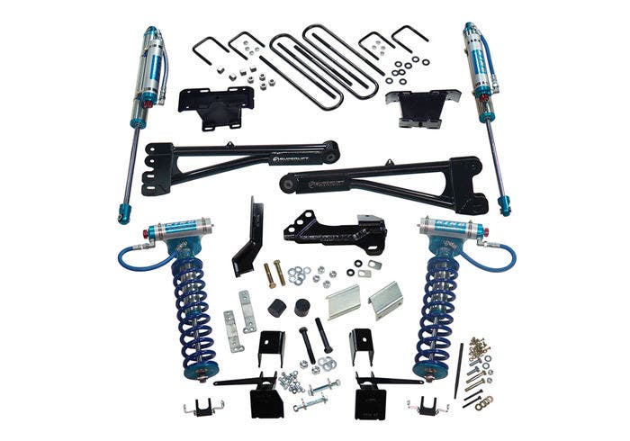 Suspension Lift Kit w/Shocks; 4 in. King Edition Radius Arm Lift; w/King Front Coilovers And King Reservoir Rear Shocks;