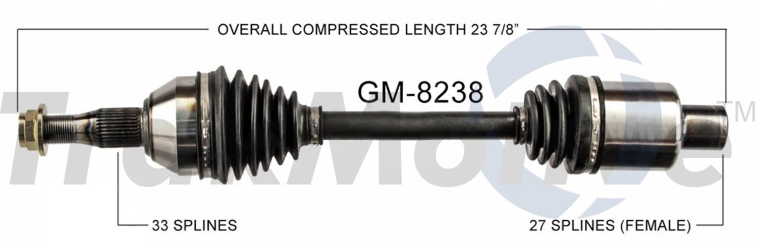 TrakMotive CV Axle Shaft P/N:Compatible with/Replacement for GM-8238