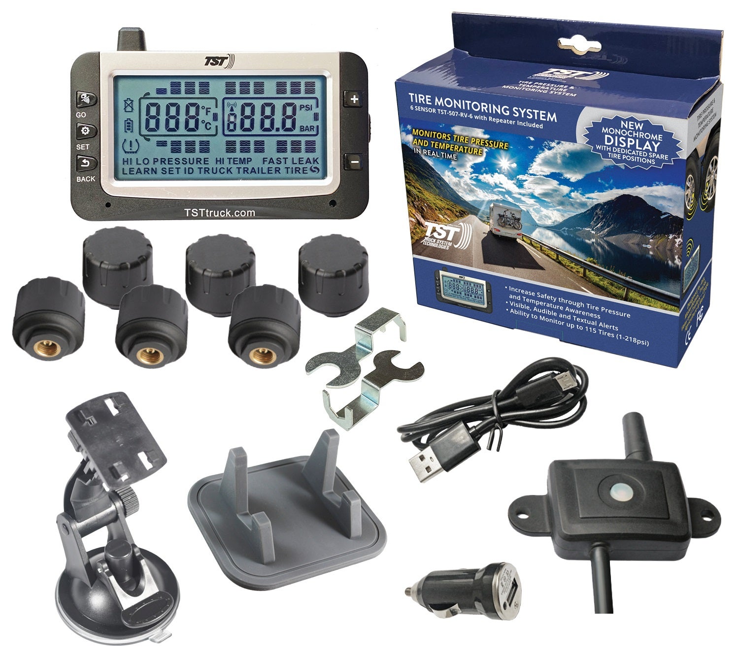 TRUCK SYSTMS - TST-507-RV-6 - TST 507 6 Sensor Tire Monitoring System with Monochrome Display - Handles Multiple Trailers