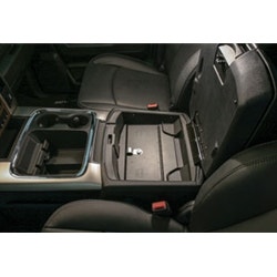 Continuing the Tuffy legacy of designing and manufacturing the finest console safes in the industry since 1997, Tuffy is proud to introduce our new security console safe for RAM full size trucks. This 16 gauge steel console safe provides style, security and convenience. While maintaining the refined curves of the OEM console, the Tuffy console safe transforms your OEM console into a heavy-duty lockable storage area utilizing Tuffy's Pry-Guard locking system with 10 tumbler double bitted security key to help protect valuables from thieves. The innovative design utilizes an exclusive lid support feature that keeps the lid open while accessing contents. The safe maintains a completely stock look including full use of armrest and lid. Featuring a durable texture powder coat finish, the safe comes ready to install. Drilling is required for a secure installation. The safe is not designed to work with the OEM remote CD player.