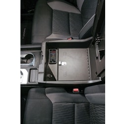 Continuing the Tuffy legacy of designing and manufacturing the finest console safes in the industry since 1997, Tuffy is proud to introduce our new security console safe for the 2014 plus Toyota Tundra. This 16 gauge steel console safe provides style, security and convenience. While maintaining the refined curves of the OEM console, the Tuffy console safe transforms your OEM console into a heavy-duty lockable storage area utilizing Tuffy's Pry-Guard locking system with 10 tumbler double bitted security key to help protect valuables from thieves. The Tuffy console safe provides access to optional OEM 12v power outlets from the console. The innovative design utilizes an exclusive lid support feature that keeps the lid open while accessing contents. The safe maintains a completely stock look including full use of armrest and lid. Featuring a durable texture powder coat finish, the safe comes ready to install in just a few minutes without drilling.