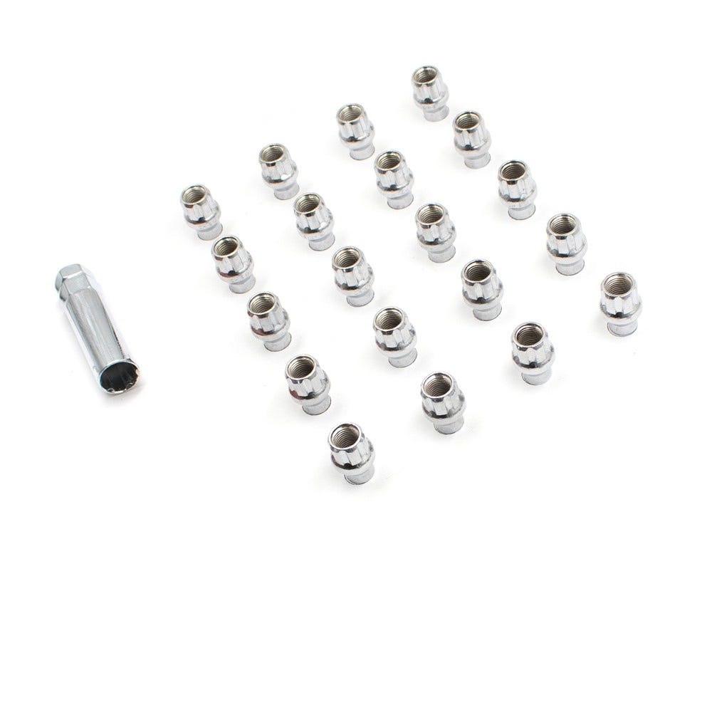 Coyote - Archived - 22K548 - Wheel Accessories Parts Set of 20 Chrome M14x1.50 Lug Nuts Open End Spline Extended Thread 0.31" Shank Length Small Diameter Wheel Lug Nut - Fits Compatible